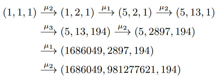 Starting from (1, 1, 1), all Markov triples are produced by permutations and Vieta jumping equivalent to the following three operations called “mutations”: