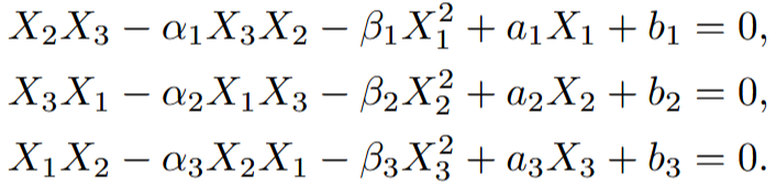 Note that for a_{i} = b_ {i} = 0, i = 1, 2, 3, the Sklyanin–Painlevé algebra restricts to the so called Artin–Schelter–Tate–Sklyanin algebra with three generators. For β_{1} = β_{2} = β_{3} = 0 and (α_{1}, α_{2}, α_{3}) ≠ (0, 0, 0) this algebra produces the monodromy manifolds of the Painlevé differential equation in the semiclassical limit.