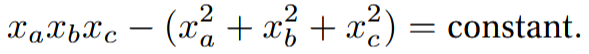 This is equivalent to the Markov cubic up to a rescaling of x_{a}, x_{b}, x_{c}.